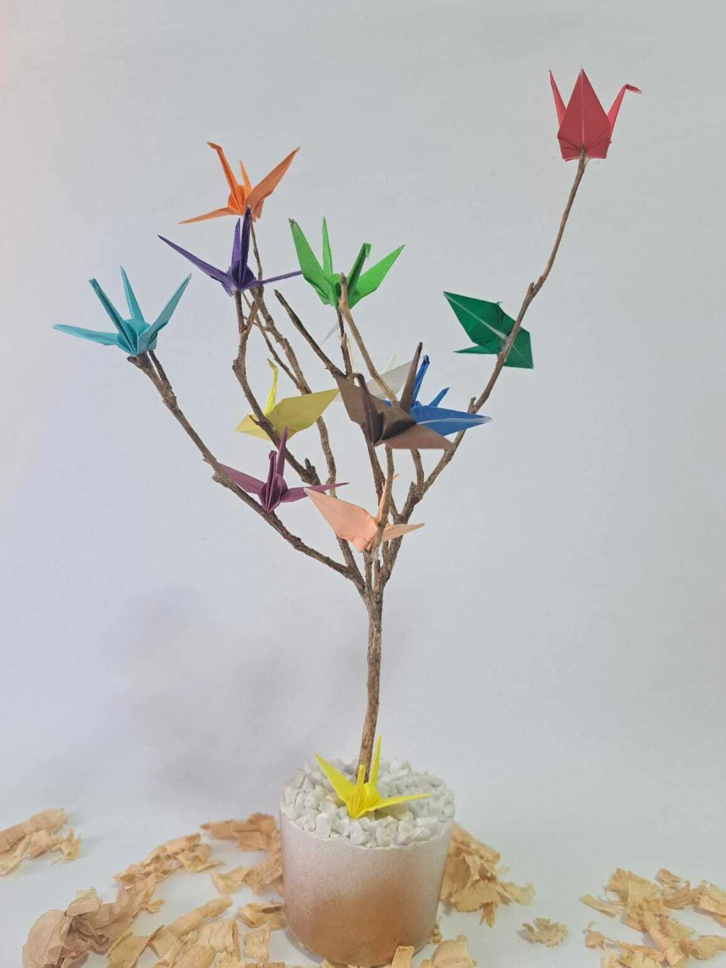 Assim que finalizar a sua Árvore de Tsuru, já levará para decorar sua casa ou presentear alguém especial.